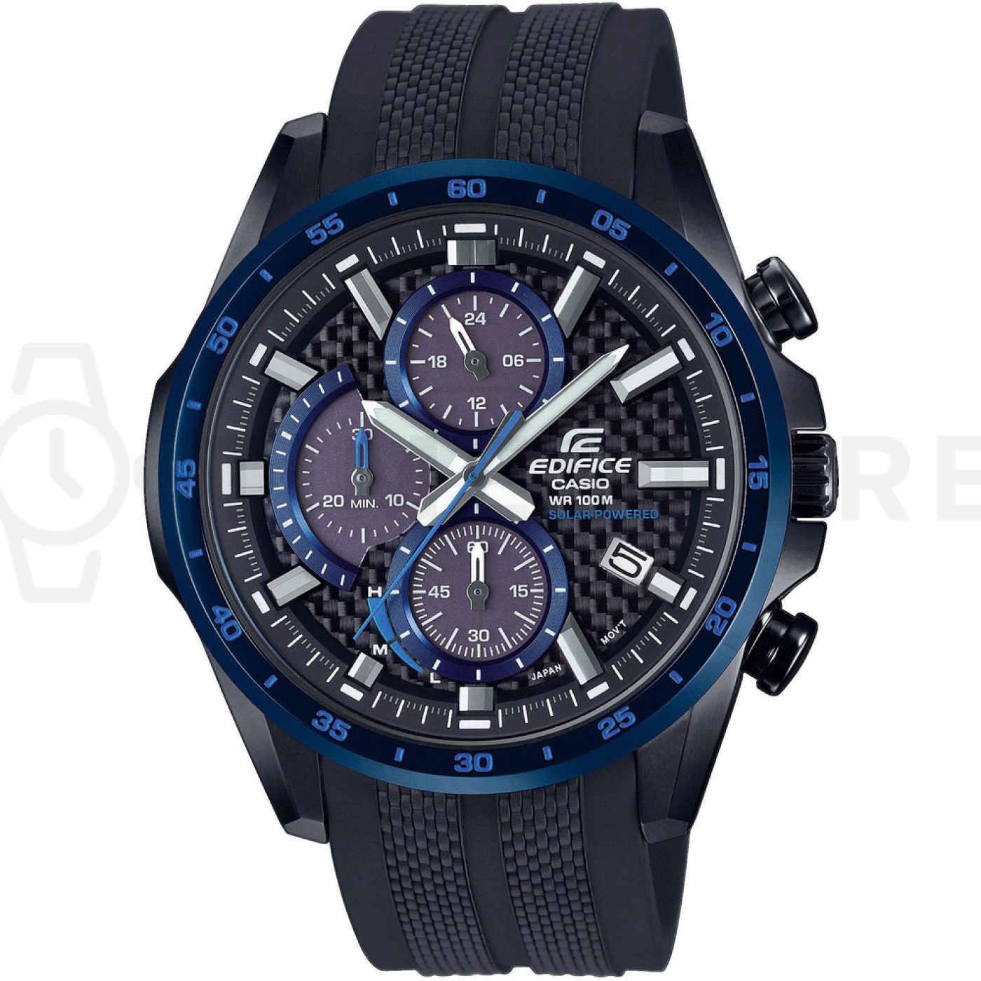 - Luminiscenčné indexy, 24 hodinový subciferník, Stopky, Chronograf, Indikátor nabitia batérie, Osvetlenie, Luminiscenčné ručičky