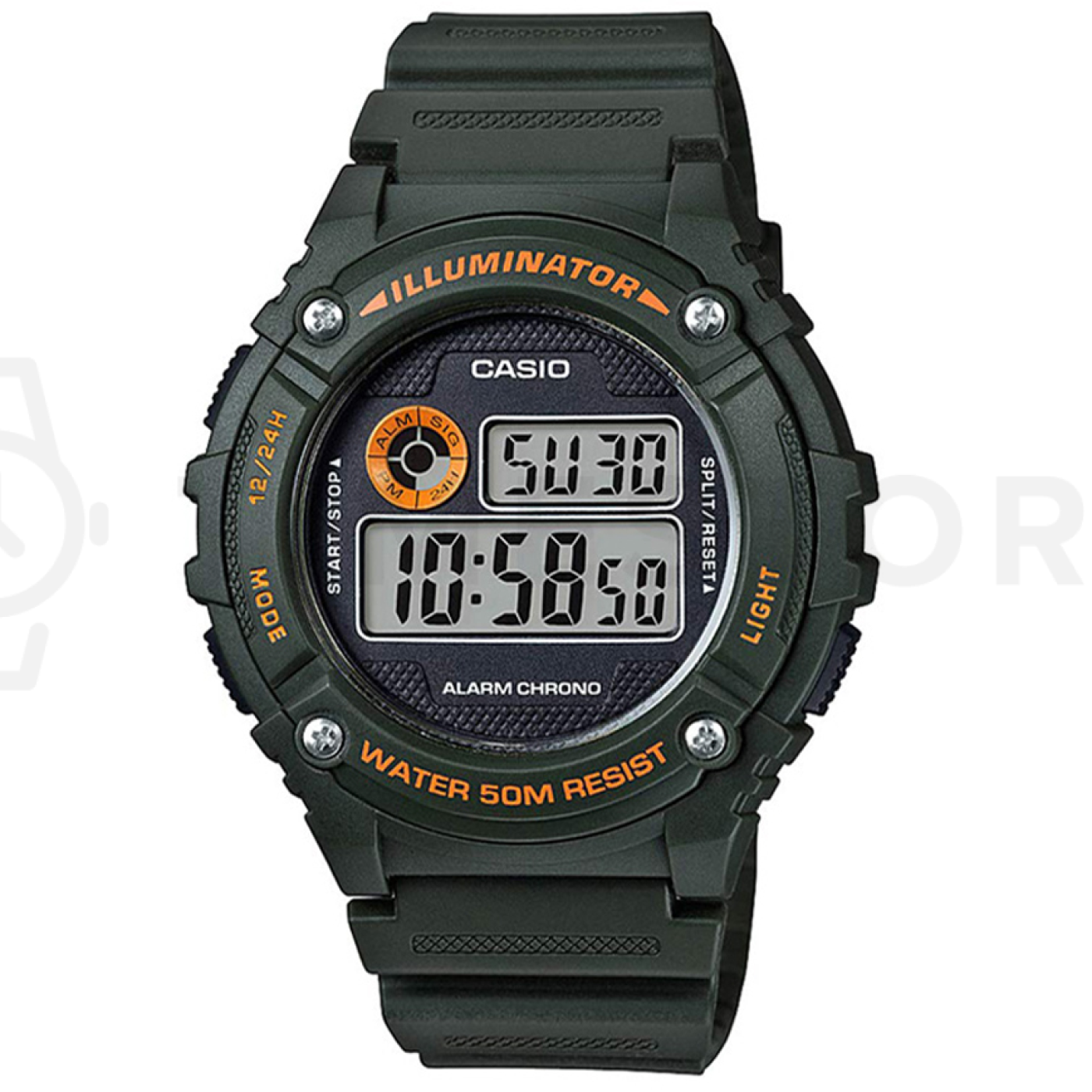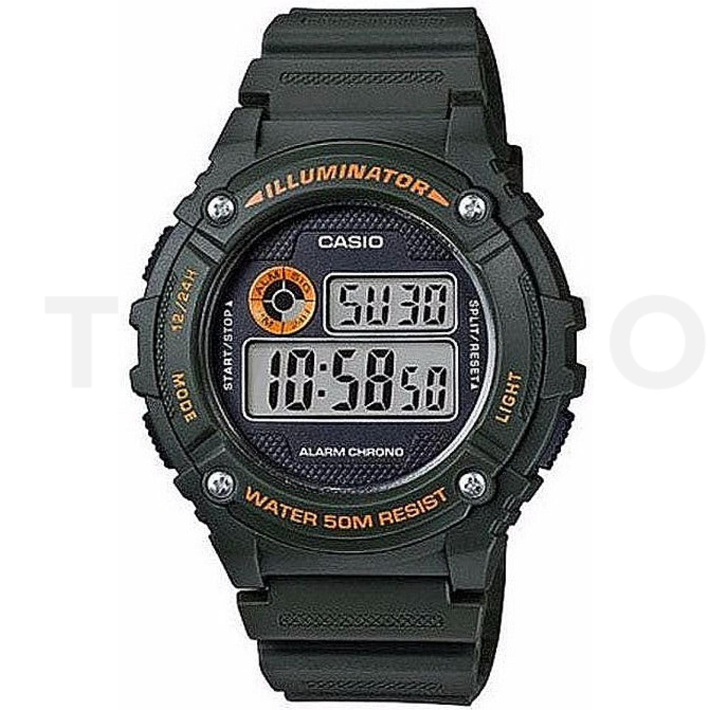 - Alarm, Stopky, Osvetlenie, Ročný kalendár, 24 hodinový subciferník, Ukazovateľ dní v týždni