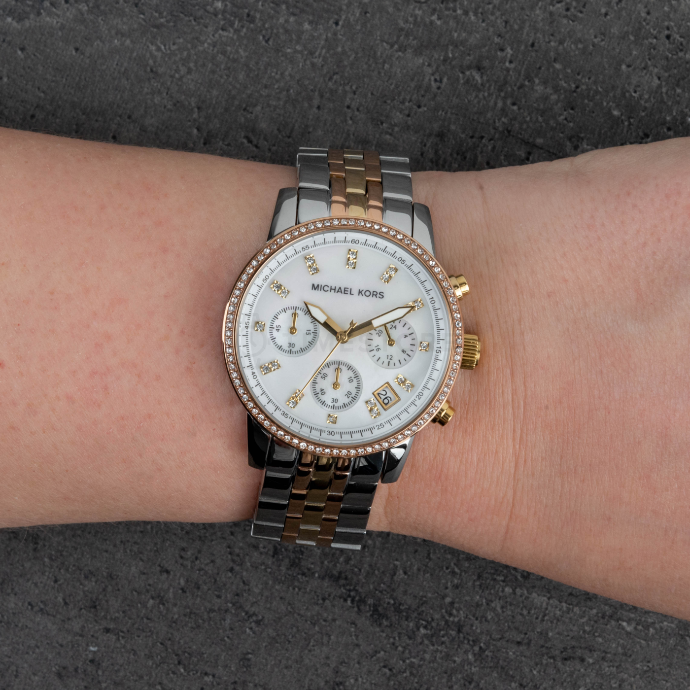 Pre mňa sú toto jednoznačne najkrajšie hodinky od MK na aké som doteraz natrafila. Tá kombinácia farieb a krásny perleťový ciferník sú dokopy neskutočné. Fakt hodné každého eura a vyzerajú ako luxusné drahé hodinky.