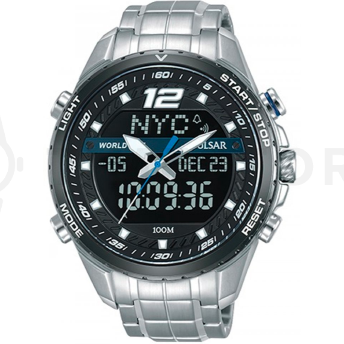 - Stopky, Alarm, Svetový čas, Luminiscenčné ručičky, Chronograf