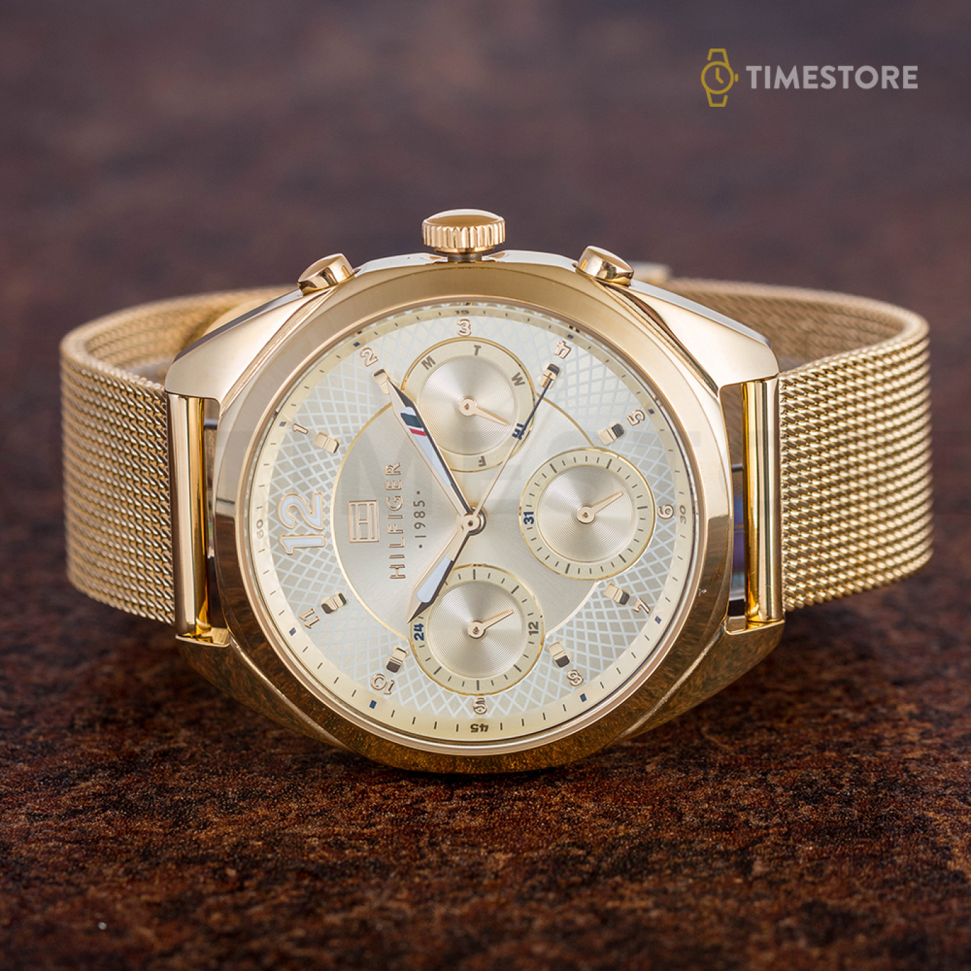 Okúzlili vás tieto parádné hodinky od Tommy Hilfiger? Vyobrazený model Tommy Hilfiger 1781488 ozdobuje zaujímavý ciferník, ktorého farba je zlatá a ich rozmer je 38 mm. Farba púzdra je pri tomto kúsku luxusná zlatá, pričom hlavným použitým materiálom na púzdre je oceľ s PVD povrchom. Nerezový remienok uchytávajúci púzdro je v krásnej farbe, pričom tá je pri modeli 1781488 zlatá. Nepreberajte však dlho, tieto kvalitné hodinky pre dámy Tommy Hilfiger sú parádnym a štýlovým doplnkom.
