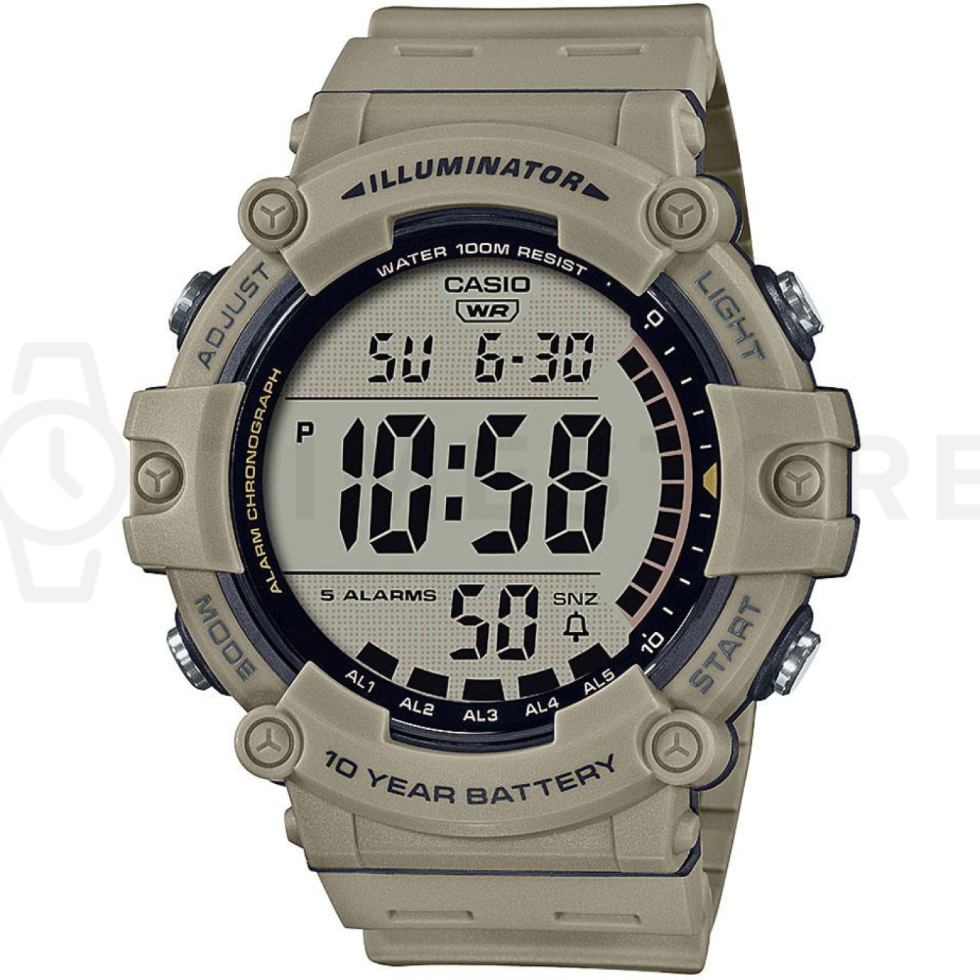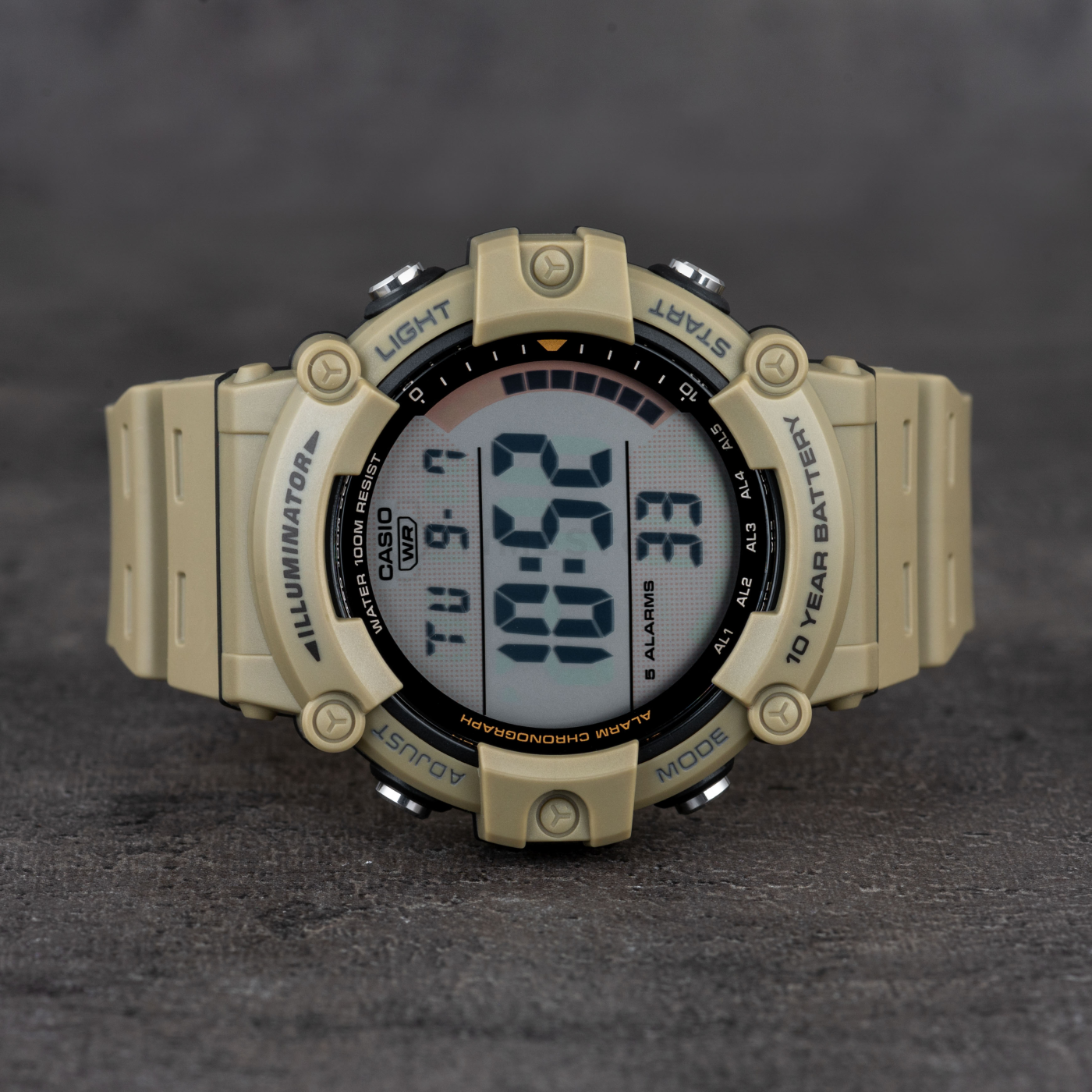 - Duálny čas, Alarm, Stopky, Osvetlenie, Stopky s odpočtom